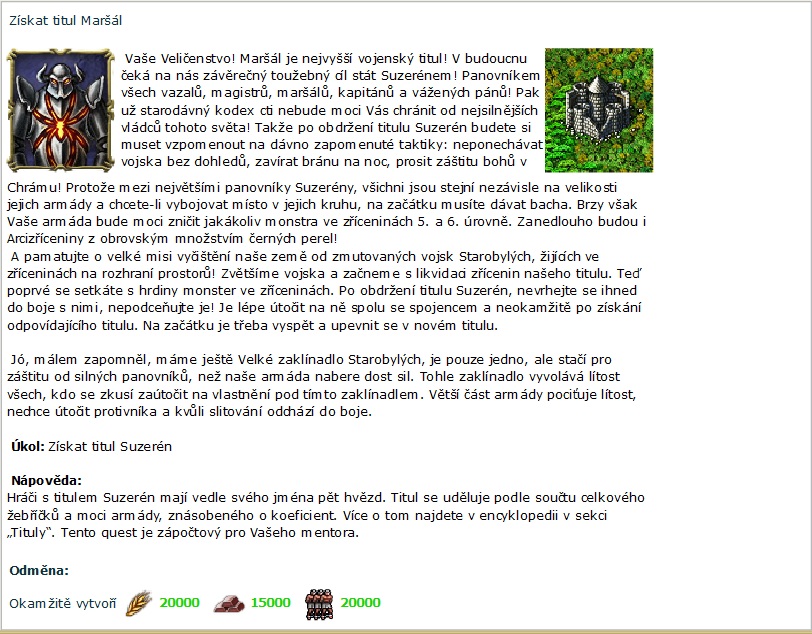 Při získání titulu Maršál vyskočí znovu tentýž úkol. Avšak v popisku je Suzerén. Přikládám obrázek